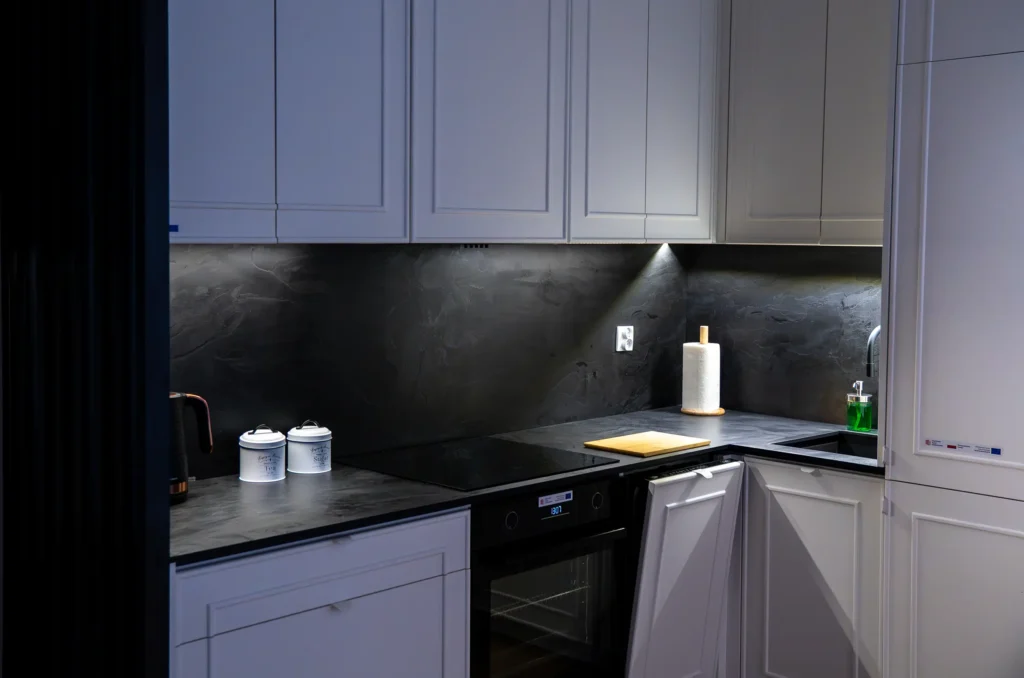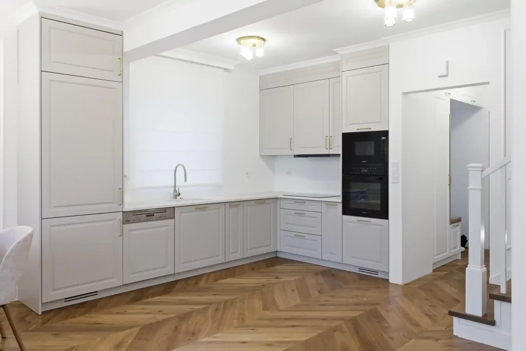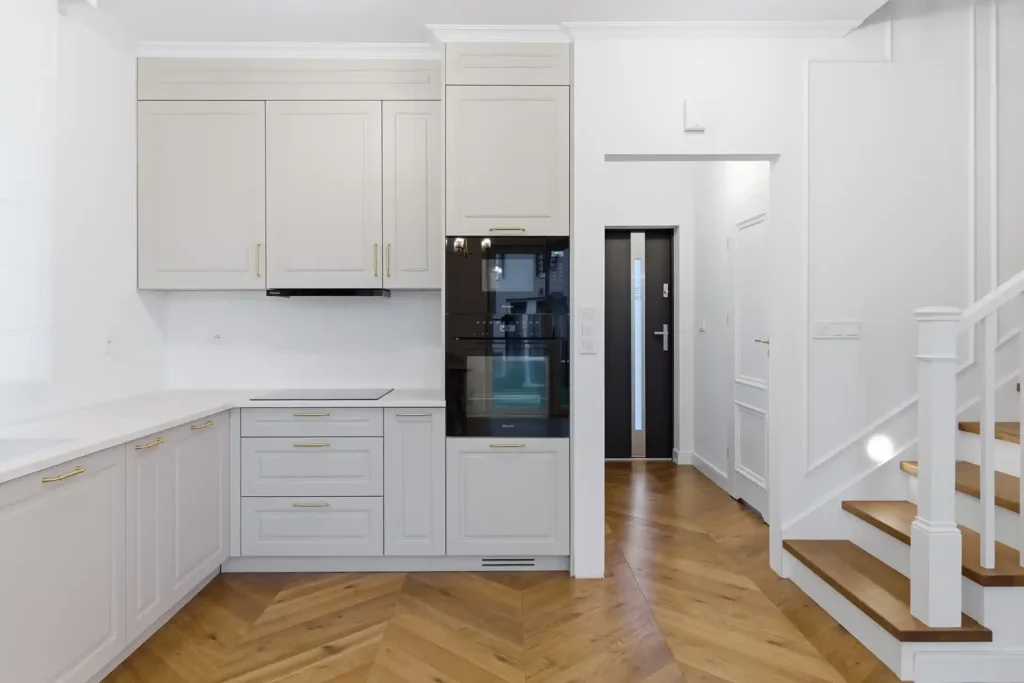 Każdą kuchnię zaczynamy od rozmowy i pomiaru. Sprawdzamy układ pomieszczenia, instalacje, światło dzienne i sposób, w jaki korzystasz z kuchni. Projektujemy strefy robocze tak, żeby gotowanie, przechowywanie i sprzątanie zajmowało mniej czasu i nerwów.